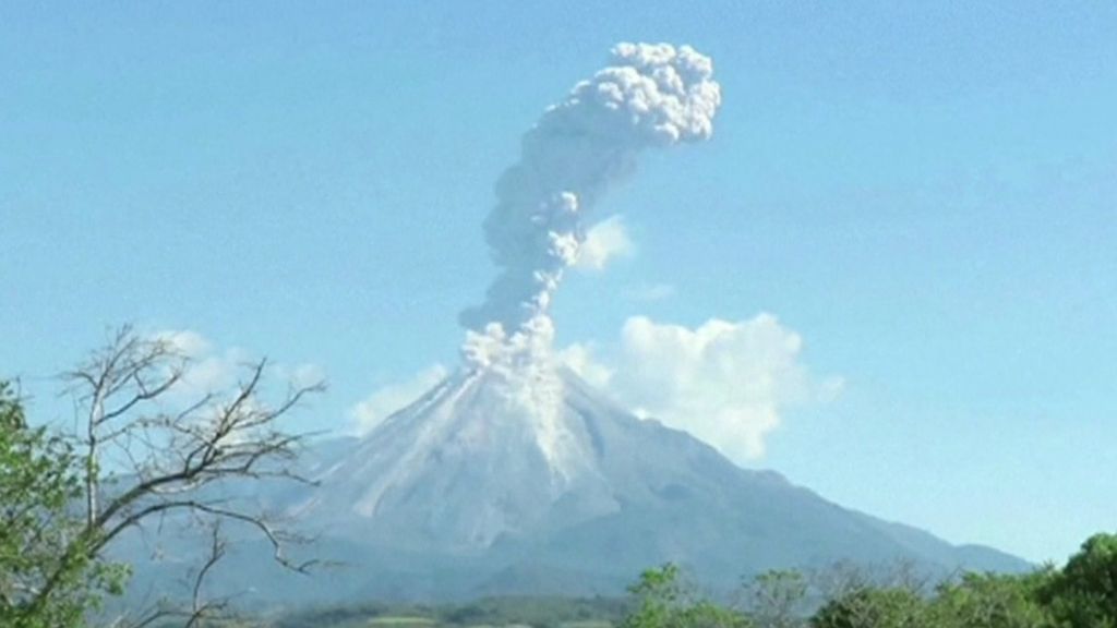 The Colima volcano in Mexico has been spewing out large columns of ash up to 2.8 kilometres into the air.