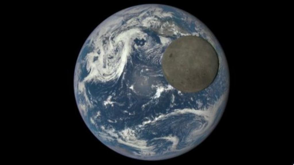 The far side of the moon is never visible from Earth and these pictures show the moon as it passes over a sunlit Earth.