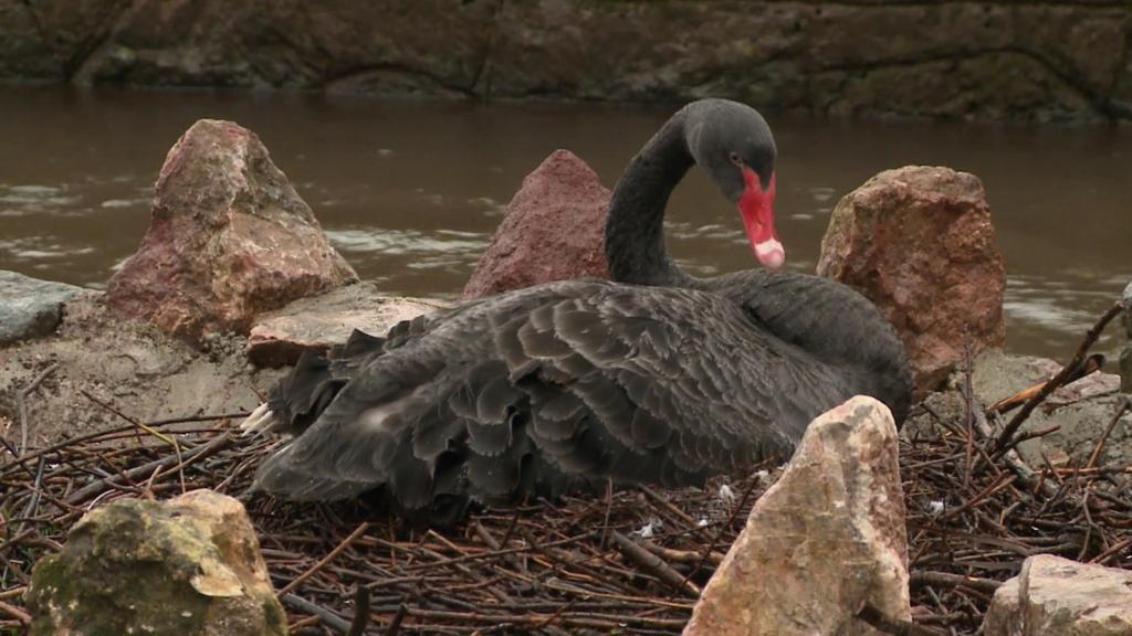 A pair of black swans have laid eggs in Dawlish, in the south-west of England.