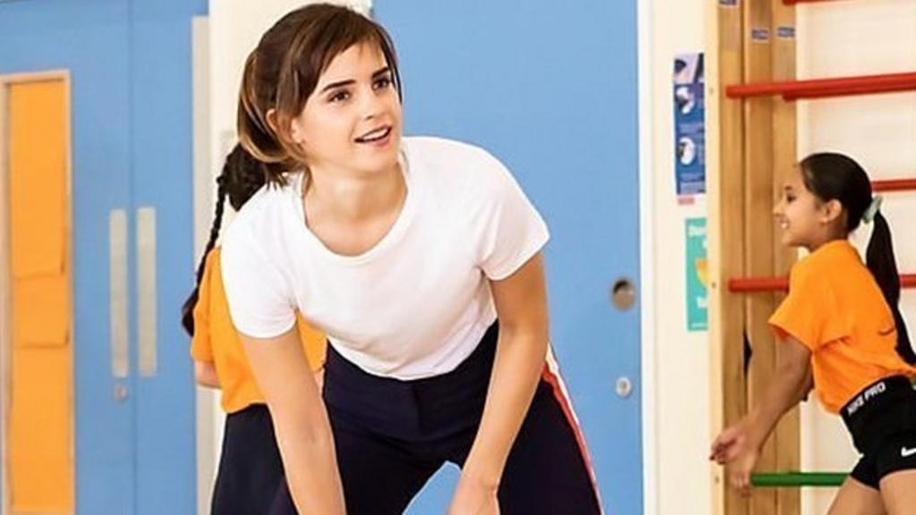 Harry Potter star Emma Watson turned up at a school in London to surprise them with a game of hockey.