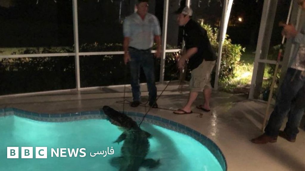 پلیس فلوریدا در شرق آمریکا، تصاویری از یک تمساح سه متری منتشر کرده که وارد استخر یک مجتمع مسکونی شده است.