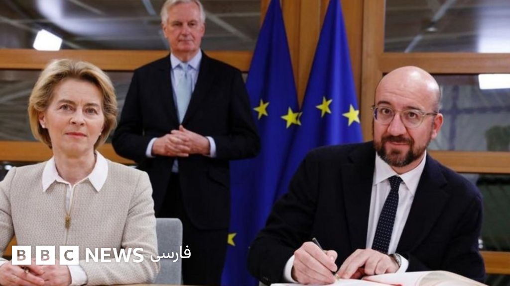 اورزلا فن درلاین، رئیس کمیسیون اروپا و شارل میشل، رئیس شورای اروپا توافقنامه خروج بریتانیا از اتحادیه اروپا (برگزیت) را امضا کردند.