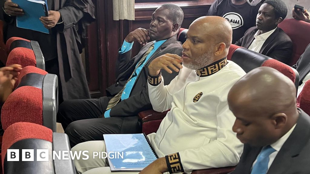 Di Ipob leader even pull up im shirt for di court dia to show Justice Nyako sometin wey dey grow for im two armpits, wey be symptoms of di health challenges wey e dey face.