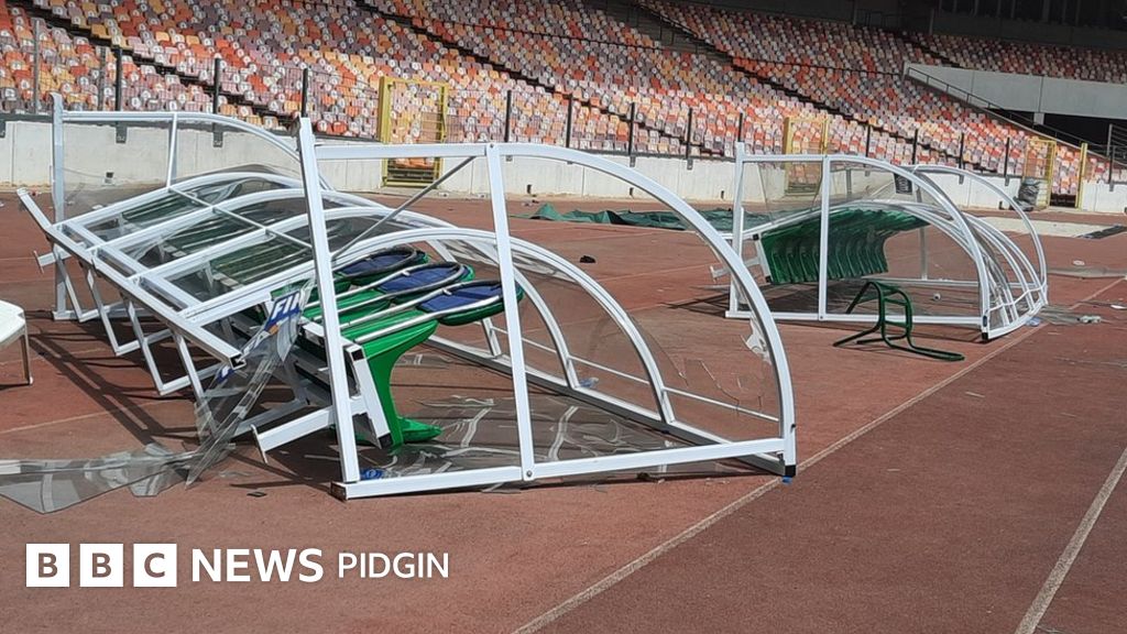 BBC Pidgin tori pipo see as dem tear di net for one of di goal post and how dem begin destroy di technical crew and substitute bench.