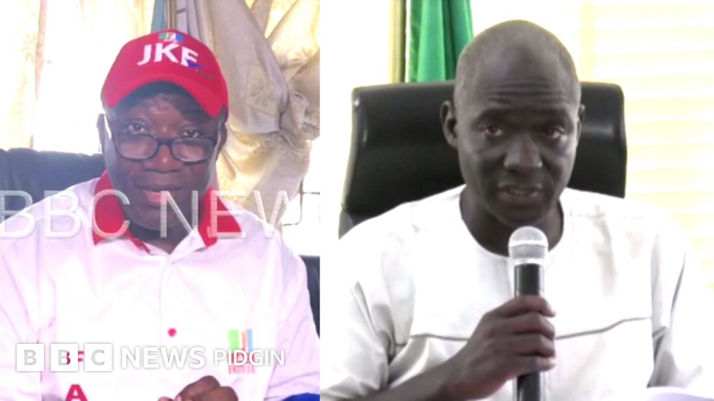 'From result wey dey our hand, our candidate Professor Olusola Eleka beat di APC candidate Kayode Fayemi' Na wetin PDP claim.