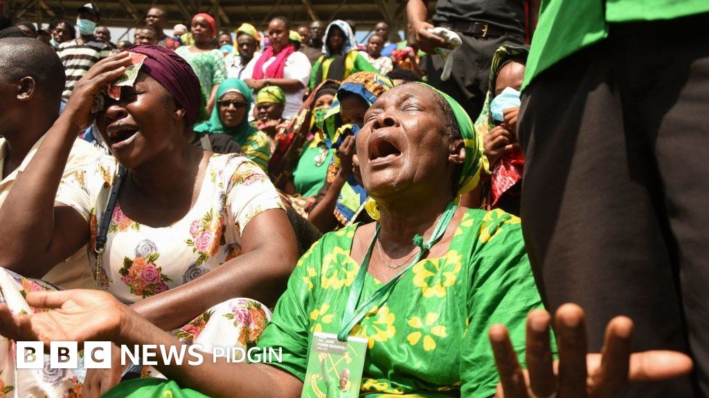 On Friday President Samia speak of di "heavy load" on her shoulders and urge for pipo to "bury dia differences" and unite during di mourning period.