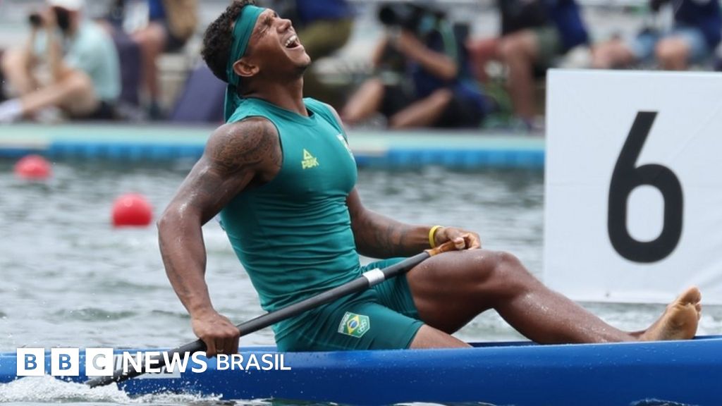 Legenda da foto, Na canoagem, Isaquias Queiroz garantiu o quinto ouro do Brasil