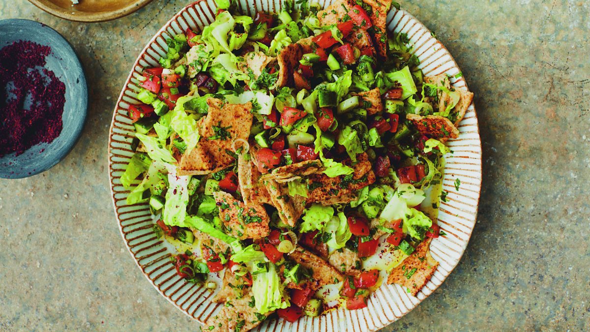 Infinitely adaptable and wonderfully refreshing, the recipe for this citrusy salad is inspired by a visit to the home of the Palestinian singer Reem Talhami, who welcomed me into her kitchen on a hot summer’s day in Jerusalem to guide me through the essential components of this Palestinian classic. It is supposed to be quite astringent so, if you enjoy sharper flavours, edge towards including more lemon juice or sumac, adding them in stages, then tasting and adjusting as you like.