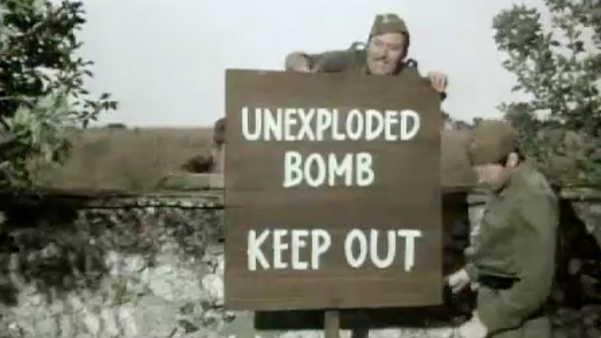 Wartime sitcom. Frazer loses a vital part of a gun he was responsible for and thinks it is in the box he keeps his tools in - which happens to be a coffin.