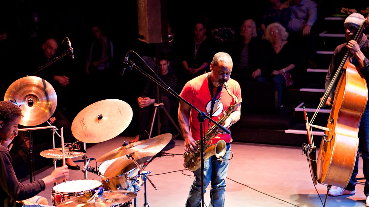 Triumvirate is led by saxophonist, Denys Baptiste - part of a generation of black British jazz musicians that emerged in the Tomorrow's Warriors collective in the 1990s, following in the footsteps of the likes of Courtney Pine and Julian Joseph. He's joined in this new trio by another member of that generation, bassist Larry Bartley, plus one of the most exciting young drummers on the British scene, Moses Boyd, to perform an improvised set that draws on songs by Gnarls Barkley, D'Angelo and Cyndi Lauper among others.
