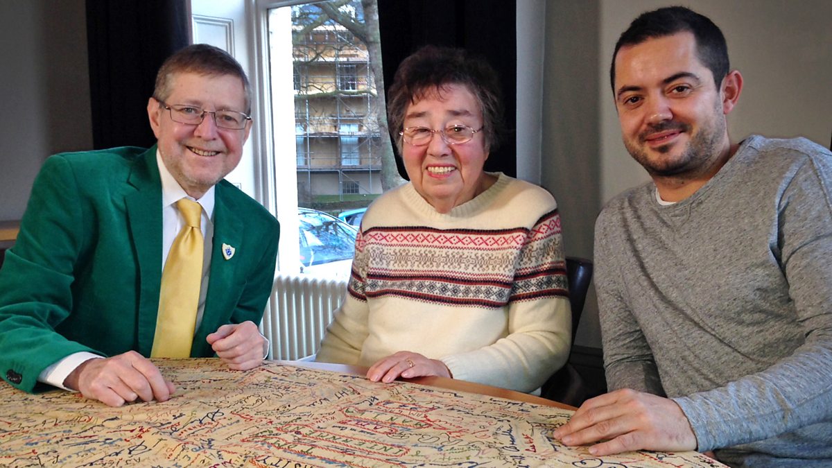 Graham Lay investigates an embroidered tablecloth. Covered in signatures, it was made by female prisoners in a Japanese internment camp during World War II.