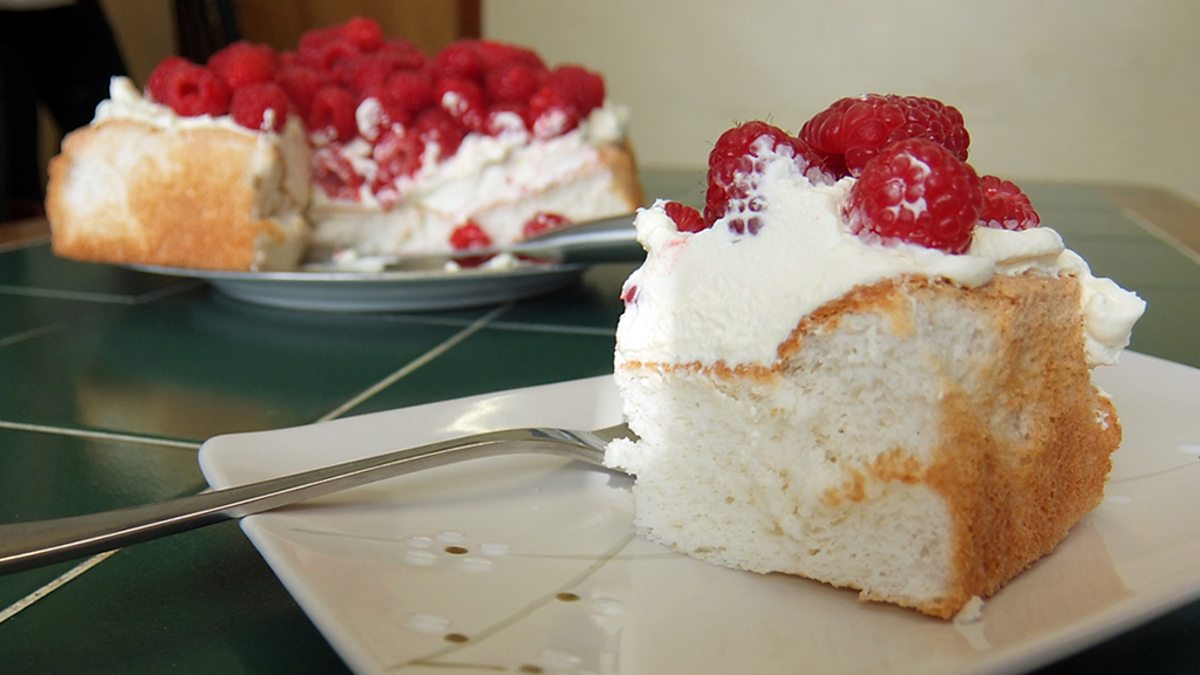 But more than that, Mairi samples a sin-free cake. The wonderfully light angel cake contains almost no fat. That is until you add a generous helping of cream and fresh fruit. And Mairi also creates the afternoon tea classic, bakewell tart, which is a prerequisite to any tea party.