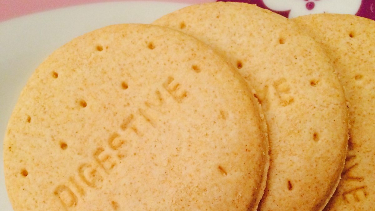 Croeso cynnes dros baned a bisgïen wrth i Beca Lyne-Pirkis ymuno â Shân Cothi i nodi pen-blwydd bisgedi digestive.