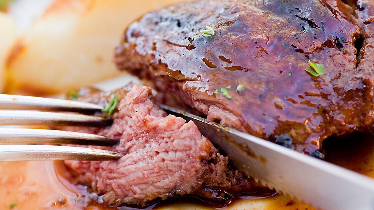 Dylan Iorwerth a'i westeion yn trafod a ddylem fwyta llai o gig coch ai peidio.