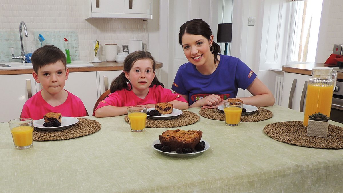 Linda Macleod and friends cook a number of tasty dishes. She is joined by Beth and Isaac to bake a delicious coconut and blackberry cake. However, before they start, they must be sure they have all the ingredients. If not, they make a list and go shopping. Linda and her friends also find out more about how blackberries are grown, and then it's back into the kitchen to bake the cake before sitting down at the table to taste it.