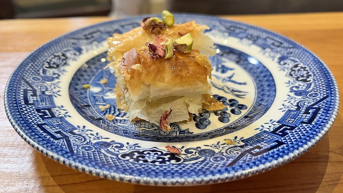 At home in Callanish, Gregor gives arctic roll a modern twist. This is an adult’s version with a coffee and fudge ice cream centre and a rich dark chocolate sponge. Hosting friends for tea, Gregor takes inspiration from Morocco. He makes a filo pastry coil, known as M’hencha, filled with ground nuts and drizzled with his own Callanish honey.