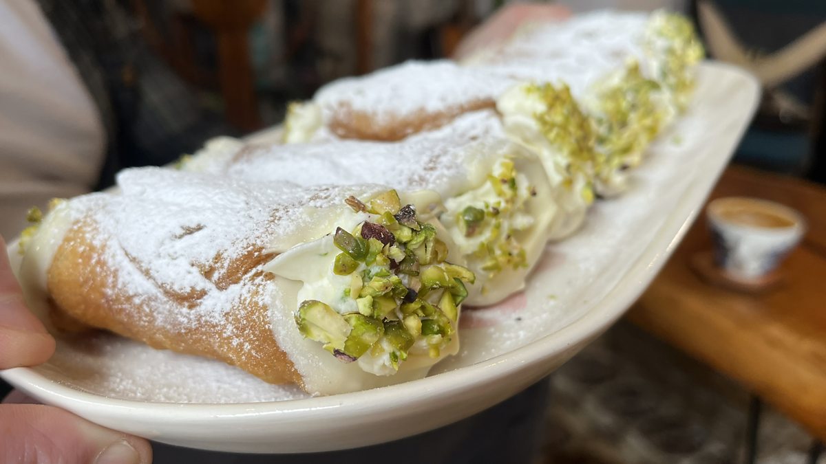 Cuideachd air a mhisneachadh le thurasan dhan Eadailt ’s a cuid chafaidhean leòmach, tha Griogair a’ cuir a dhreach fhèin air cannoli.