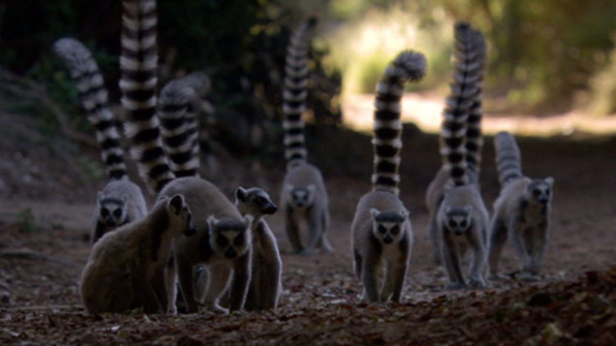 Smell is of particular importance to the primates of Madagascar: the lemurs. Ring-tailed lemurs have pointed snouts and wet noises, and the males have sharp pads on their wrists with which they scratch the trunks of young trees. Also on their wrists are glands which they use to impregnate the bark with a pungent smell that acts as a territorial marker. Females, on the other hand, leave a different scent, one which tells males that they're coming into heat. But as a female will only be receptive for about 24 hours, tensions soon run high amongst the males. As scraps break out, some of the males sneak off and try to get to the receptive female. Adding wrist gland perfume to their tail, they waft their odour in the female's direction. It seems to have the right effect as the deed is soon done.