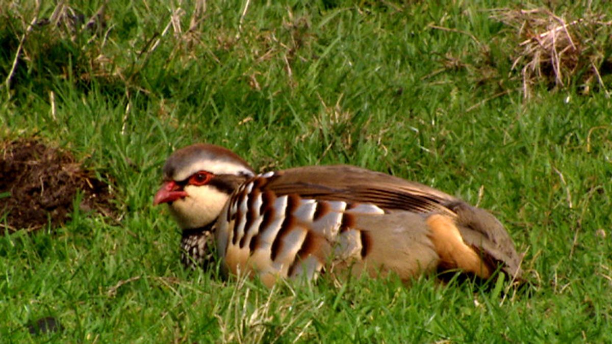 Red-legged partridges have all sorts of striking features - stripes, red eyes and a creamy face - but someone chose to name them for their legs! The common partridge - not very common in Britain at all now - is also known as the grey partridge. That's a bit sad as they are very handsome with subtle colours. A pair of lapwings dive bombs a female pheasant, literally whacking them. The pheasants are no threat, but the lapwings are very defensive of their chicks nearby. Farmland like this can and does support wildlife.
