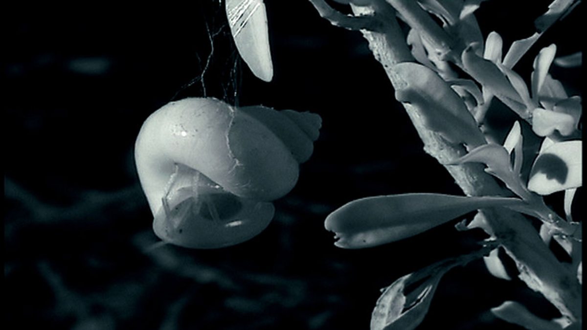 Unique behaviour as a snail shell spider hoists an empty shell up high to safety.