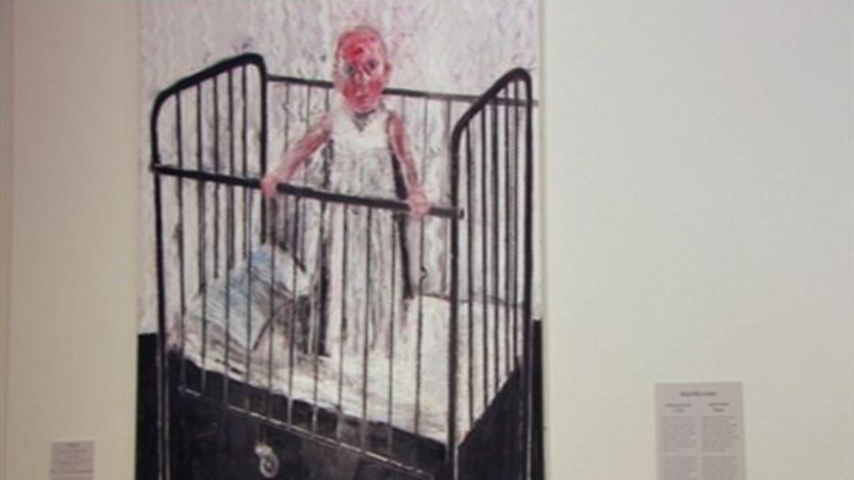 Wales' best-known female artist Shani Rhys James uses a limited palette and signature colours and creates paintings to make people question themselves. Examples of her work seen.