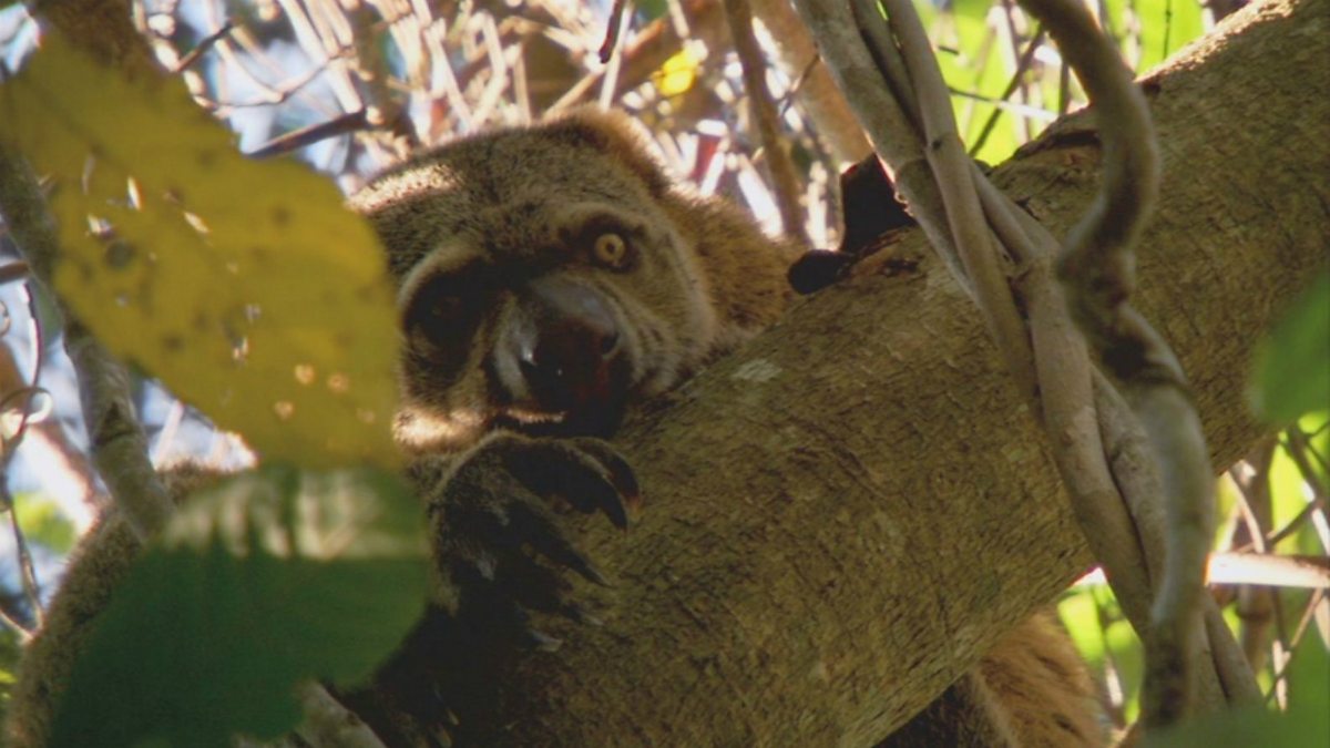 A curious marsupial in Sulawesi, the bear cuscus, reminds Bill of an angry sloth.