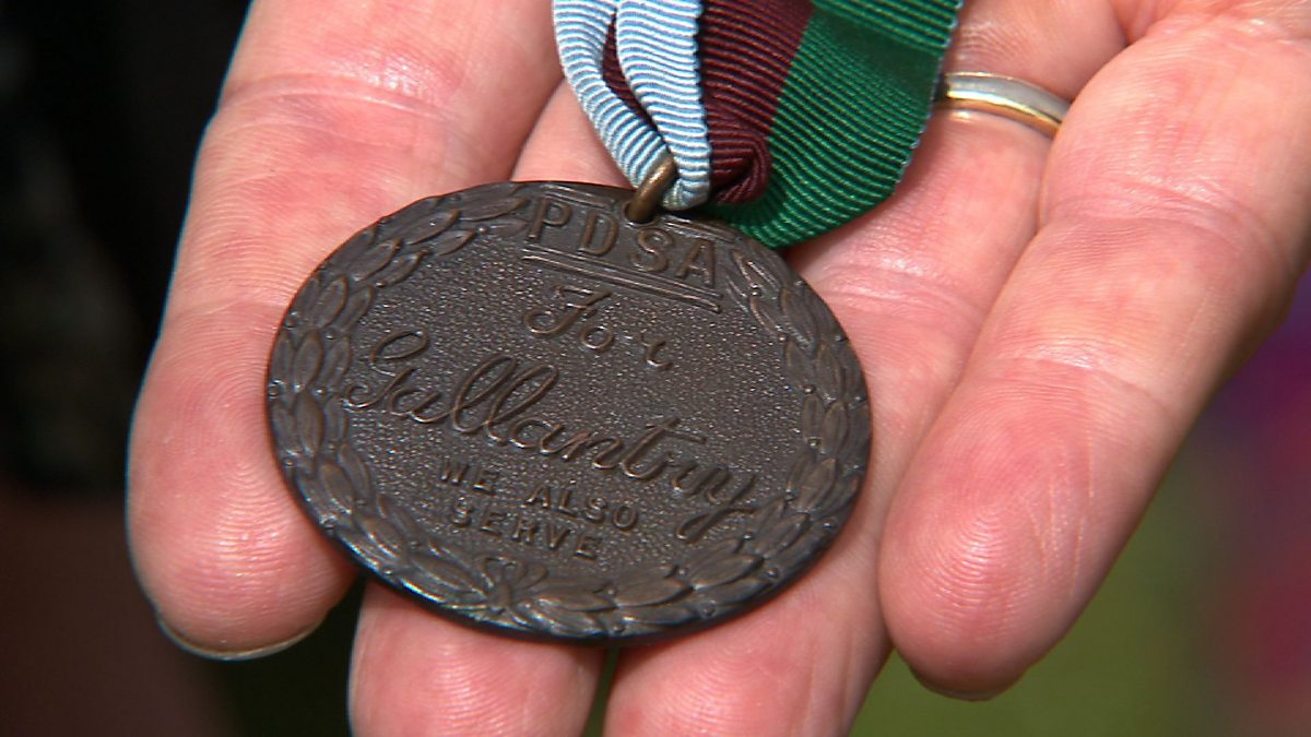 This Dickin Medal was awarded to 'Cologne' - a brave pigeon who escaped a plane crash in World War Two and found his way home.