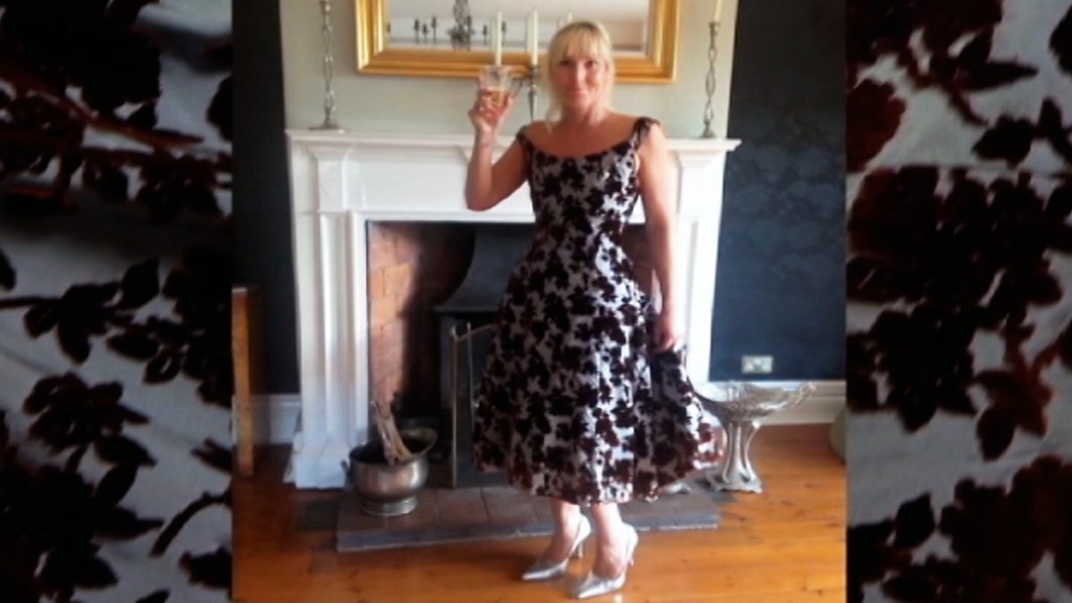 Caroline Hawley and a dress she bought for £4.