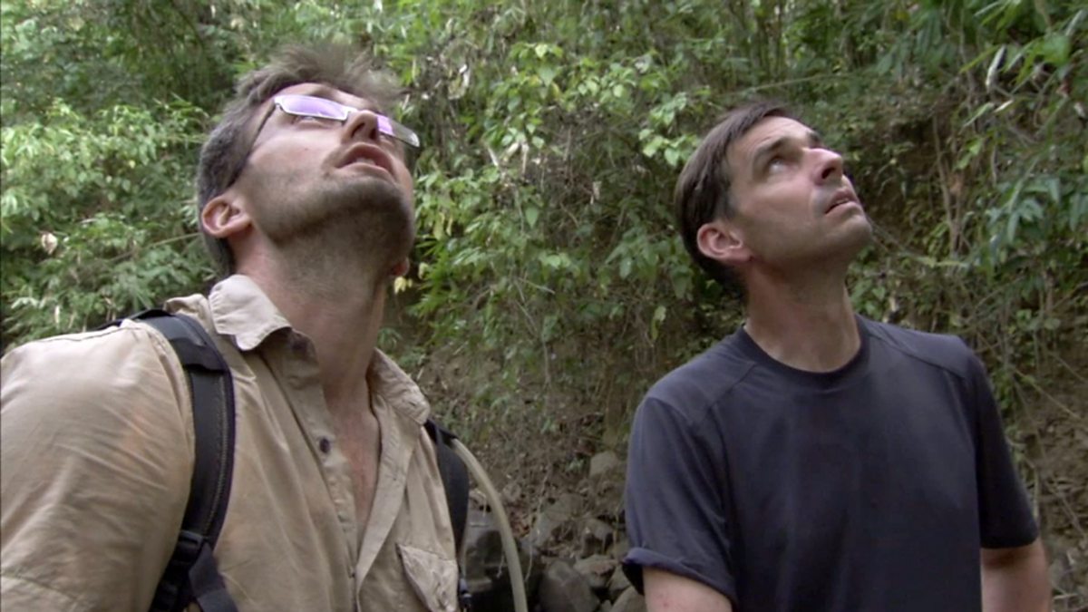 Zoologist Ross Piper and Smithsonian scientist Darrin Lunde search the forest near Salu basecamp and spot the world's longest venomous snake – the king cobra.