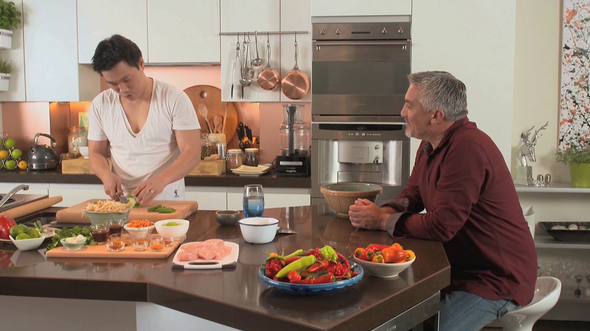 Andrew Wong cooks chicken chow mein for Paul Hollywood.