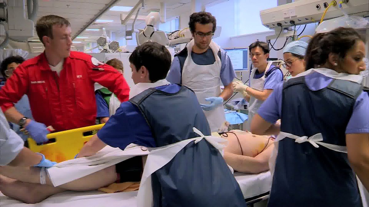 Critically injured motorcyclist Michael arrives at The Royal London Hospital where the trauma team battle to prevent him bleeding to death with a blood transfusion.