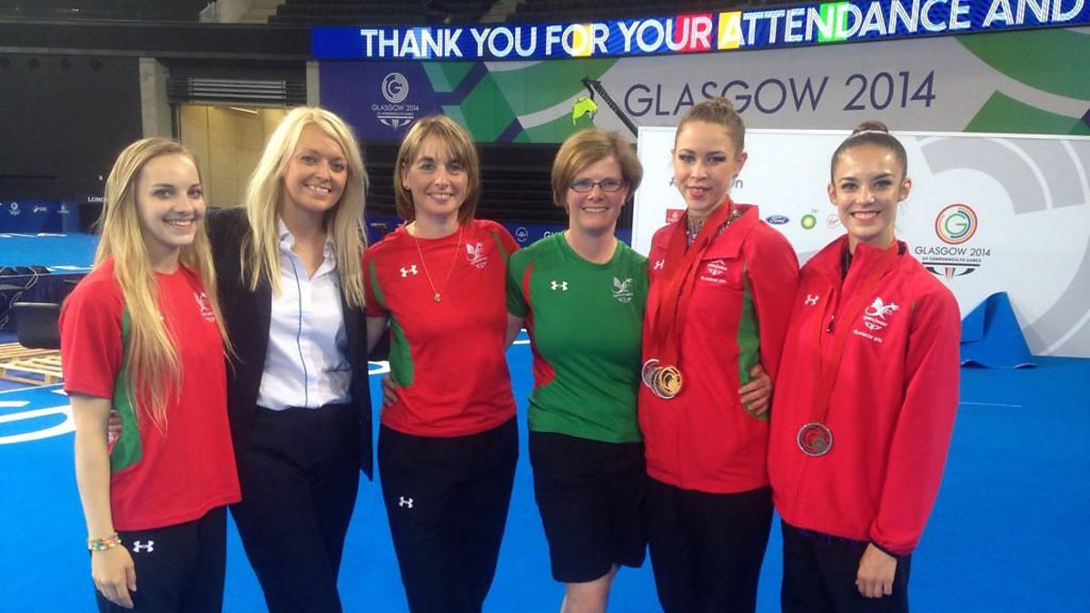 Llwyddiant Tim Gymnasteg Cymru yng Ngemau'r Gymanwlad yn Glasgow.