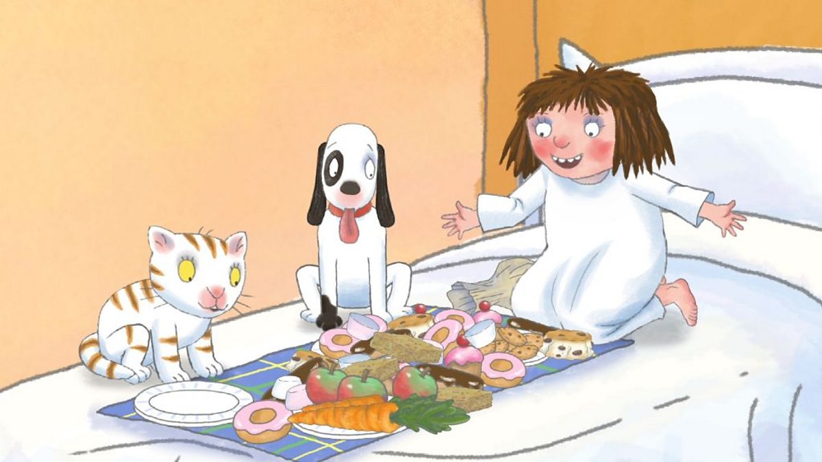 Mae'r Dywysoges Fach eisiau gwledda ganol nos. The Little Princess wants a midnight feast.