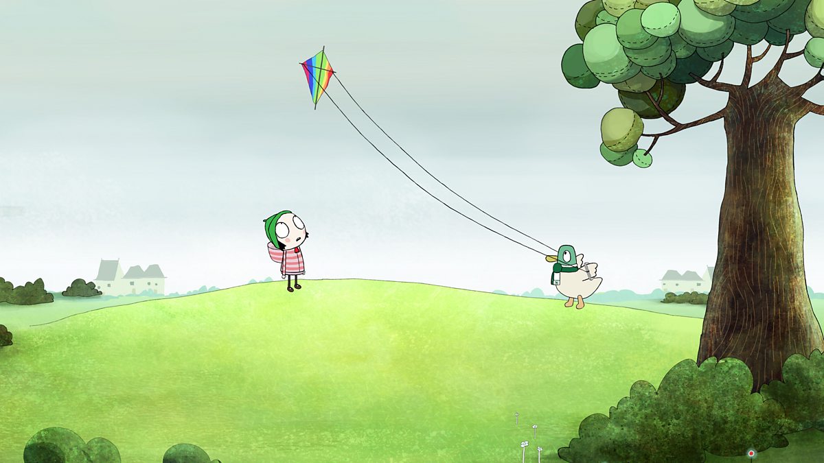 Mae'n ddiwrnod gwyntog iawn ac mae Sara a Cwac yn penderfynu hedfan barcud. It's a very windy day and Sara and Cwac decide to fly a kite.