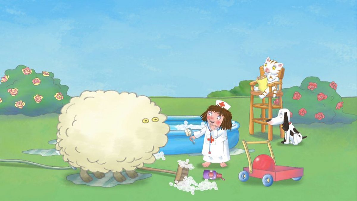 Mae'r Dywysoges Fach yn dod yn gyfeillgar gyda dafad. The Little Princess becomes friends with a sheep.