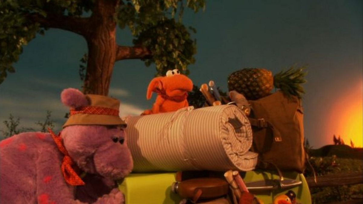 Penderfynai Mawr archwilio y lôn tu allan i'w ty. Mae Bach yn dod â'i wely gydag o am gysur! Big decides to explore the road outside their house. Small brings along the bed for comfort.