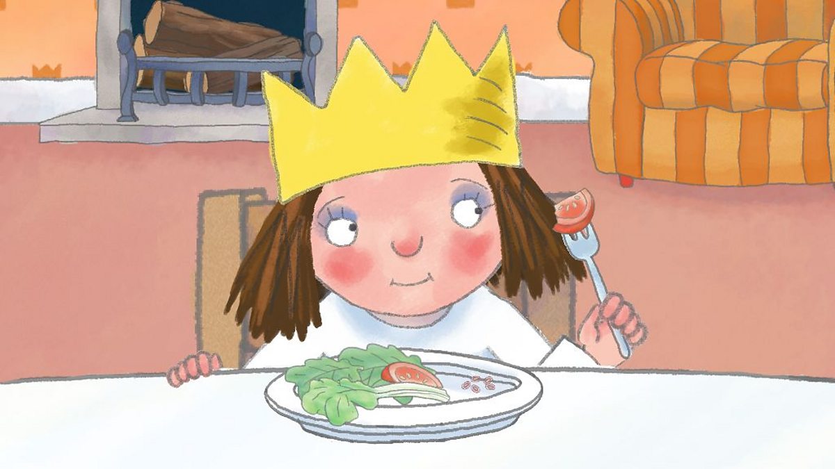 Dyw'r Dywysoges Fach ddim yn hoff iawn o salad yn enwedig tomatos. The Little Princess doesn't like salad especially tomatoes.