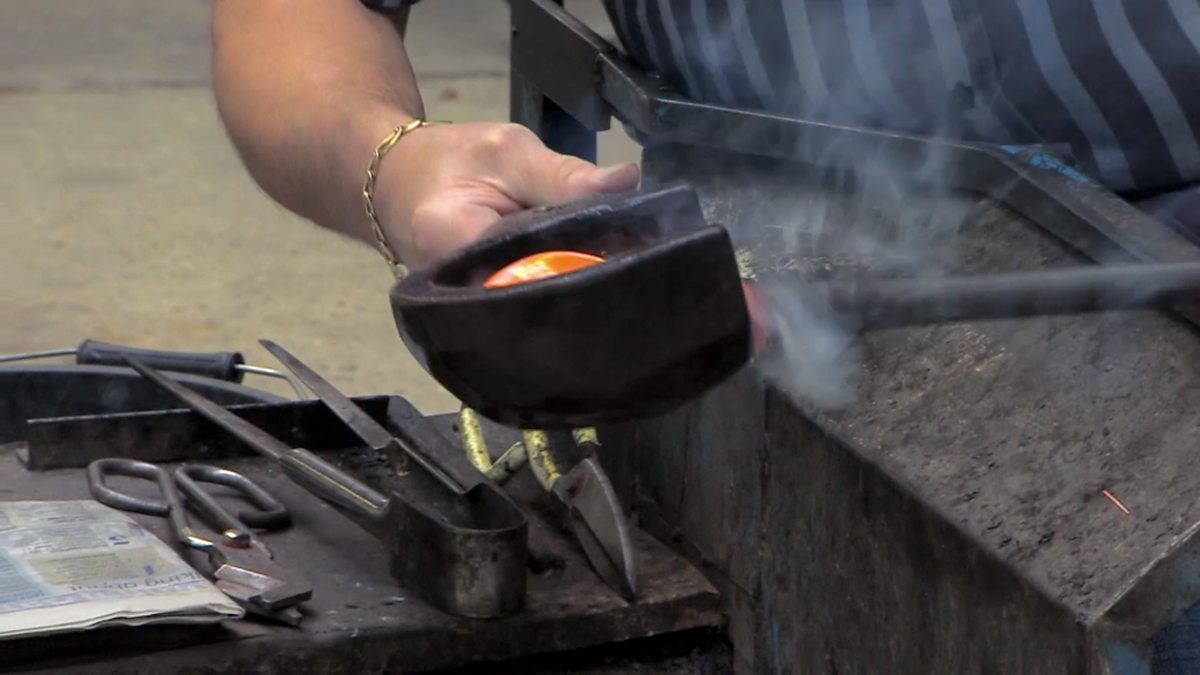Antiques Roadshow Detective Andy McConnell goes with Sue Baldwin on a quest to discover more about her Dad’s working life as a Whitefriars glass blower.