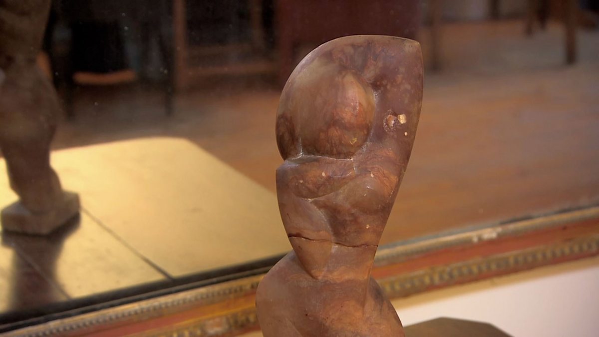 Antiques Roadshow Detective Will Farmer takes Vickki White to see a statue sculpted by her grandfather Denis Dunlop.
