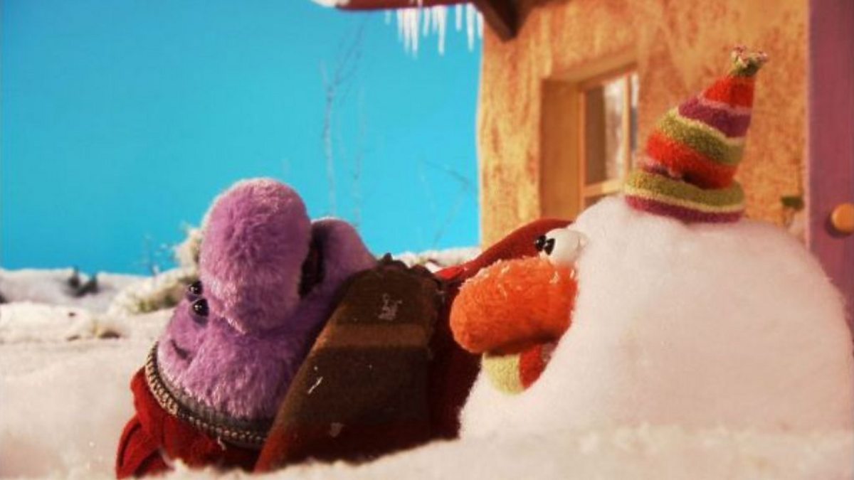 Ma hi'n bwrw eira ac yn amser nôl sled Mawr, ond a wnaiff Bach fwynhau'r reid? It's snowing and time to bring out Big's sledge - but will Small enjoy the ride?
