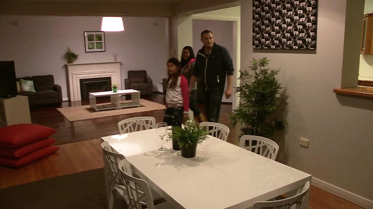 Arriving in Australia in wet weather doesn’t help Dad Richard’s hopes of persuading his family to move to the country.