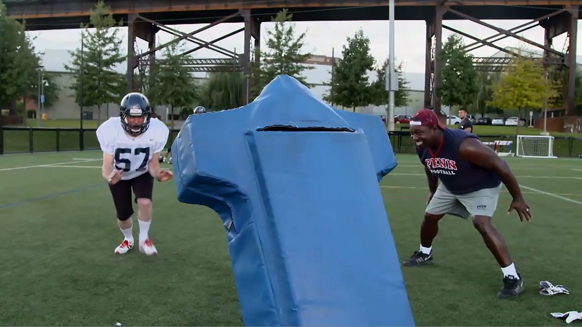 Michael dons a football kit and anxiously gets to grips with an all American sport.