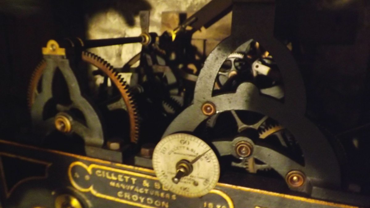 Phil climbs the tower inside St Clemence Church in Worlaby to look at the church clock.