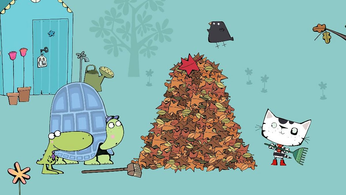 Mae'r criw yn darganfod bod modd cael llawer iawn o hwyl wrth dacluso'r dail yn yr ardd. The gang discover there's a lot of fun to be had while tidying all the leaves in the garden.