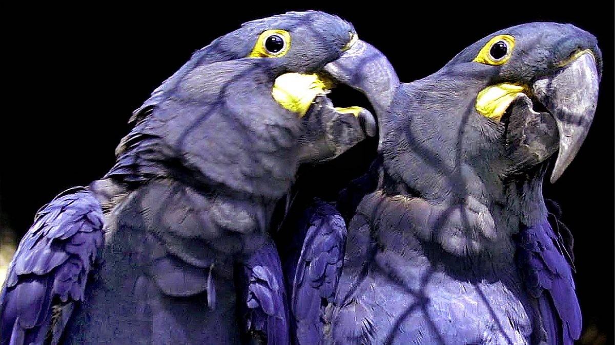 Photo: A pair of Hyacinth Macaws groom each other at the Sao Paulo Zoo, Brazil. They are one of the rarest species of birds in the world with only 130 pairs living in the wild in the Brazilian province of Bahia. (MAURICIO LIMA/AFP/Getty Images)