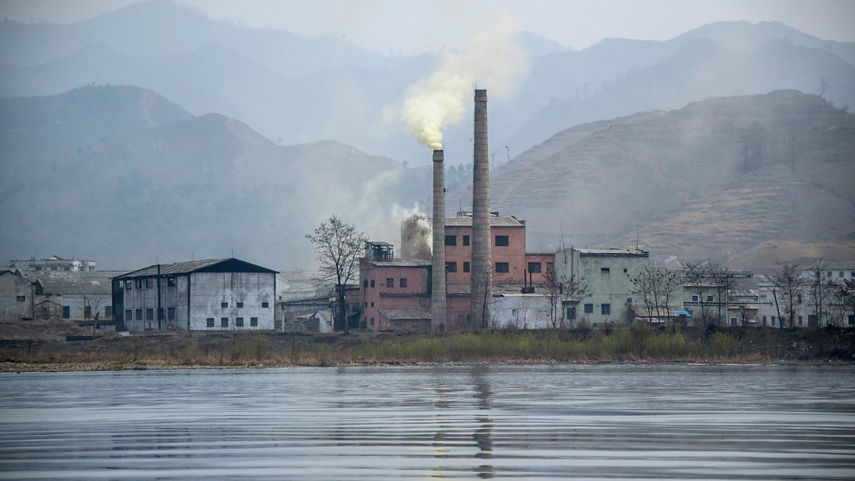 (Picture: A North Korean factory billows smoke near the Yalu river on the Chinese border; Credit: Johannes Eisele/AFP/Getty Images)