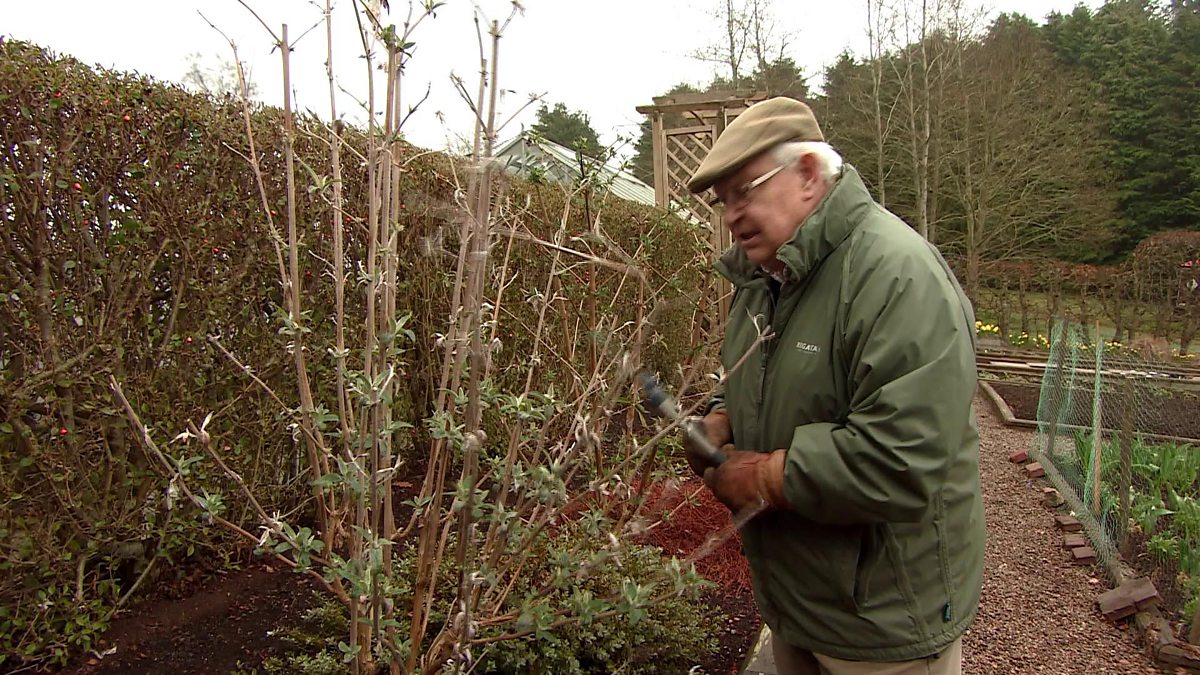 Jim does some recreational snipping and George is working his knuckles while Carole is appreciating some spring beauties she has spotted in the garden.