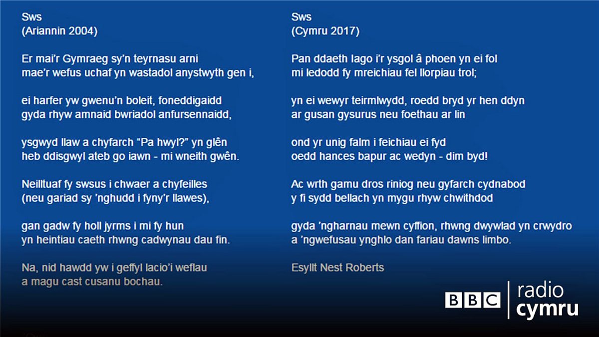 Cerdd gan Esyllt Nest Roberts ar raglen Bore Cothi.