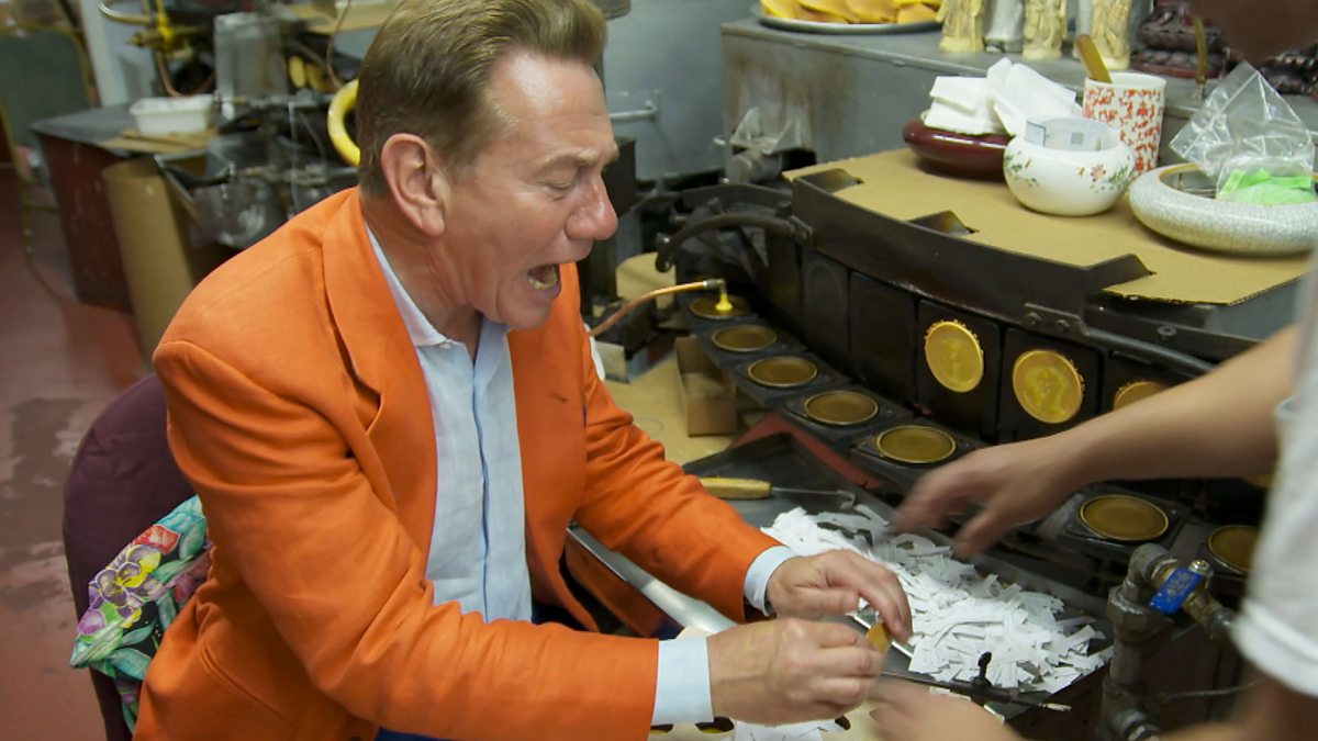 In Chinatown, Michael tries his luck folding fortune cookies fresh off the stove.