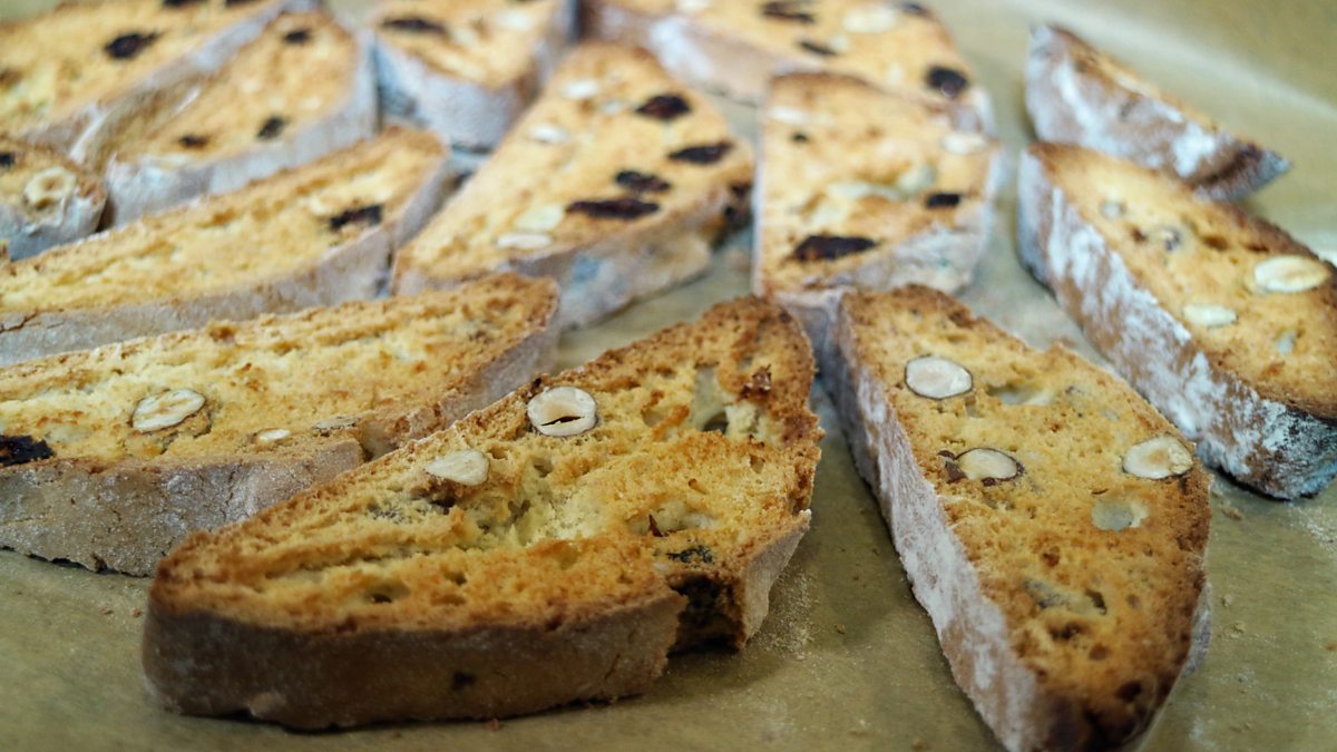 Na biscotti aig Griogar le cnothan-challtainn agus sirisean thioram